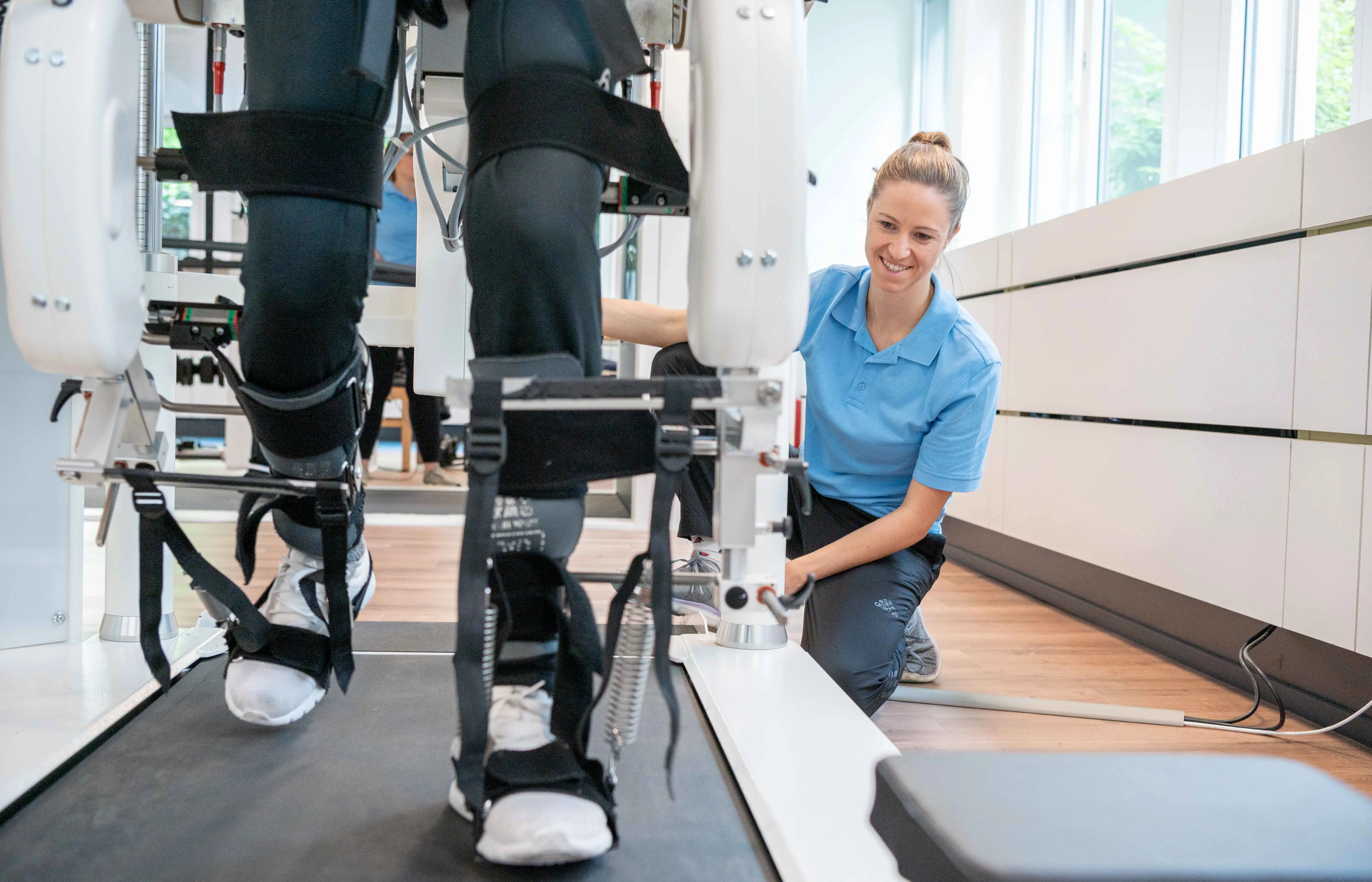 - Neurologie: Patientinnen und Patienten mit neurologischen Erkrankungen wie Schlaganfällen, Multiple Sklerose oder Parkinson werden unter anderem mittels modernster robotergestützter Therapie begleitet, um ihre motorischen Funktionen und die neurologische Regeneration zu fördern.